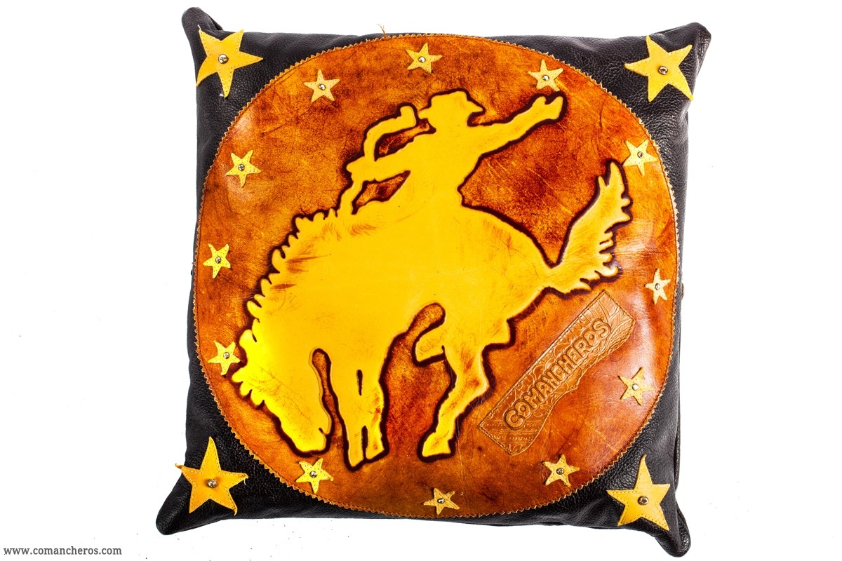 Leather cushion that represents the typical scene of the rodeo, for lovers of original western things, a particular accessory for the cowboy's house.