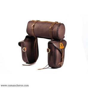 Rear saddlebags with roll, cowhide detailing